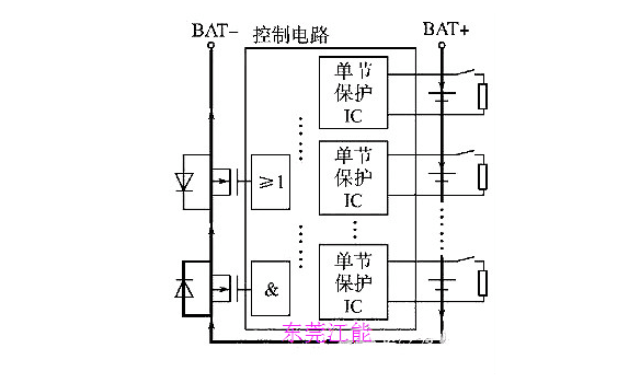 1 鋰電池組保護(hù)板均衡充電原理結(jié)構(gòu)